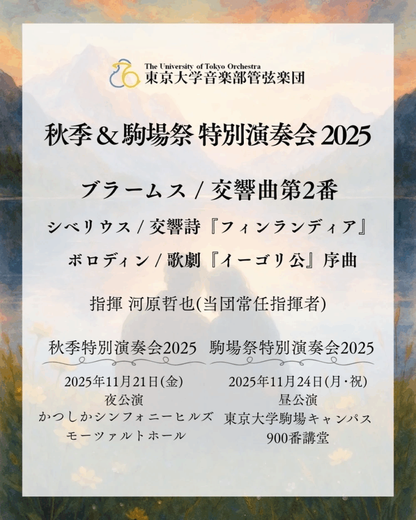 東大オケが来る2025年11月21日および11月24日に予定しております、秋季特別演奏会および駒場祭特別演奏会の入場に関する詳細をお伝えいたします。